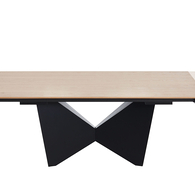 Er setzt sich aus einem schwarz pulverbeschichteten Metallgestell mit Struktur und einer Tischplatte aus biancofarbener Wildeiche zusammen. Dank der perfekt aufeinander abgestimmten Materialien und Farben erscheint der Tisch absolut harmonisch und modern - mit einer tiefgründigen sowie natürlich-warmen Ausstrahlung.